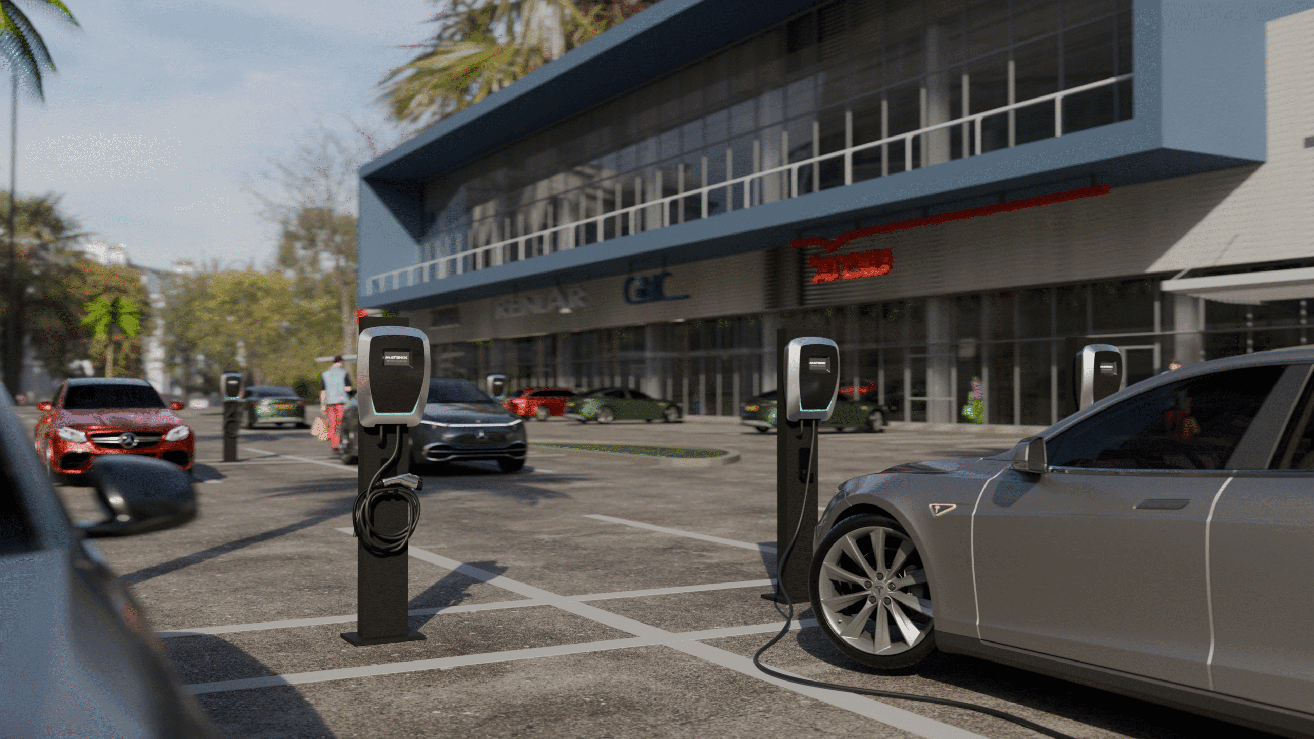 את תהליך העבודה התחלנו מקובץ תלת־ממד הנדסי של עמדת הטעינה, אותו החיינו באמצעות חומרים, תאורה, תנועה ורקעים של סביבות חיות.